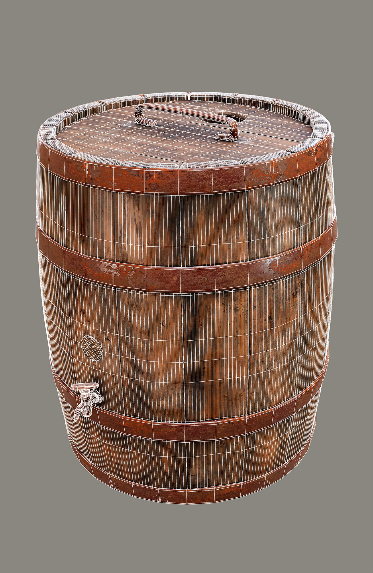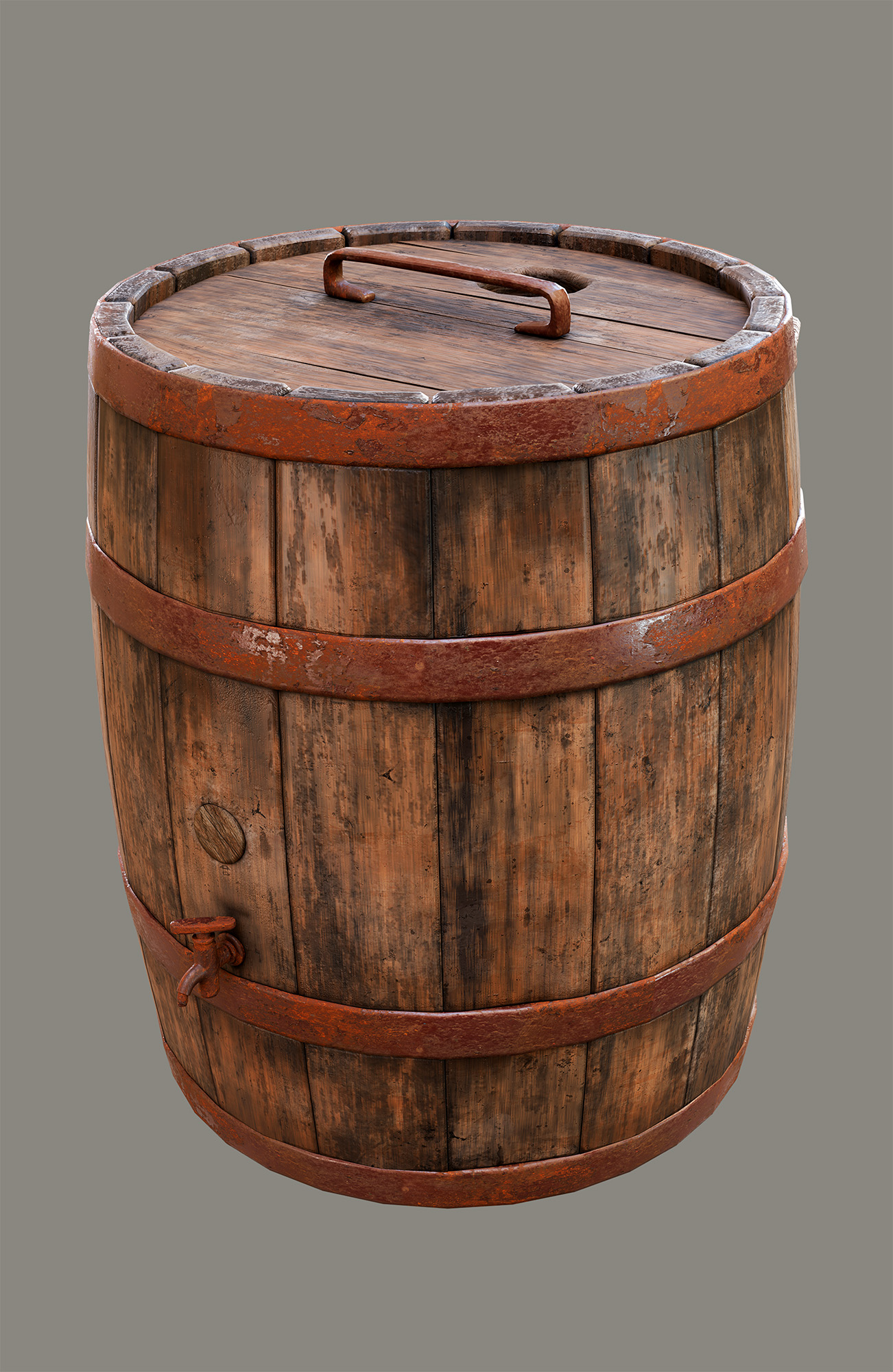 Realistic weathered wooden barrel